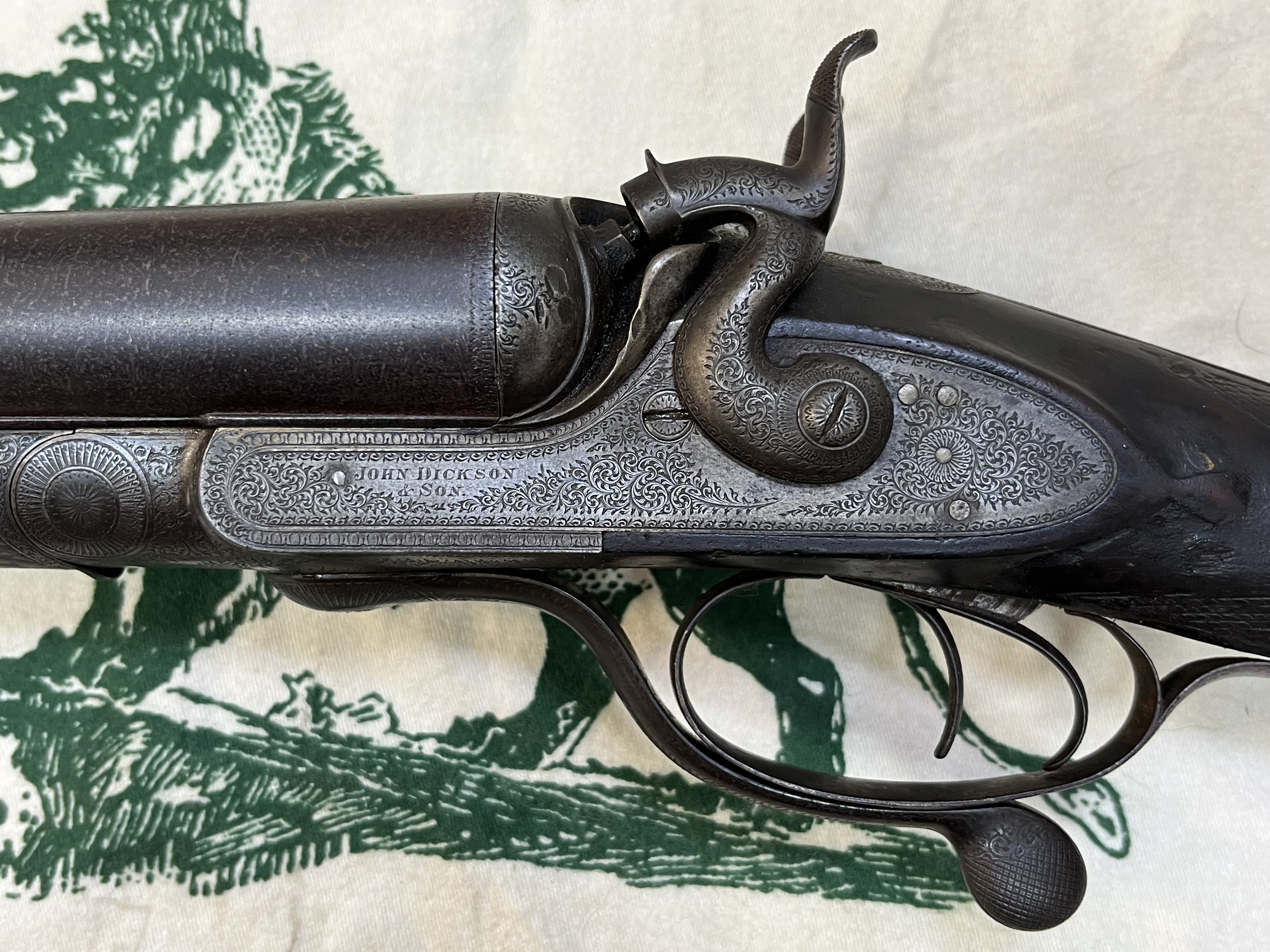 - John Dickson & Son Round-Action - Built 1894, 12 gauge, 29in damascus barrels