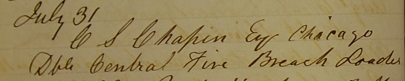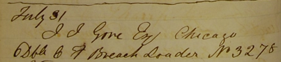 In the records for 1874, we find a gun collected on the 31st of July by Mr. G. S. Chapin, of Chicago - a 10 gauge with 32in barrels. This is very unusual, as the large majority of Dickson's orders originated and were delivered in Scotland. Bizarrely, an identical gun on the same day follows this record entry and is also heading to Chicago for a Mr. J. J. Gore. This is no coincidence, the gentlemen were in the Bourbon business together and likely in Edinburgh on all things related to the Scottish whisky industry.