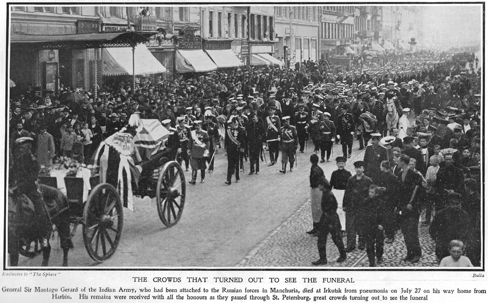 On the outbreak of the Russo-Japanese war in 1904 he went out to Manchuria as chief British attache in General Kuropatkin's army; but his health succumbed to the rigours of the campaign, and he died of pneumonia at Irkutsk on 26 July 1905 on his way home from Kharbin. A requiem mass was sung at the catholic church of St. Catherine's, St. Petersburg, at which both the Tsar Nicholas II and King Edward VII were present. The body was subsequently conveyed to Scotland, and buried at Airdrie on 8 September 1905.